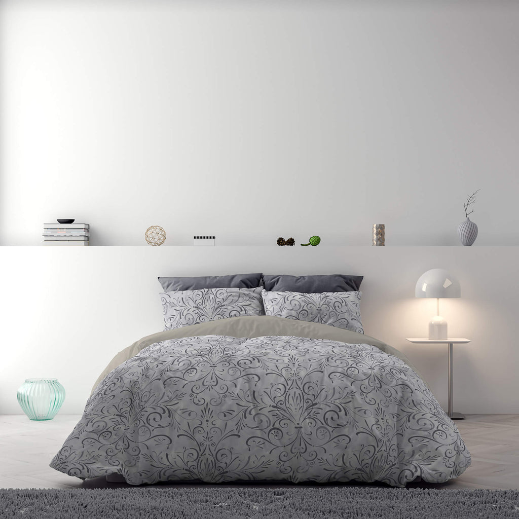 Bettbezug mit Aufdruck auf der Tasche und Doubleface Ornato Grey Kissenbezüge