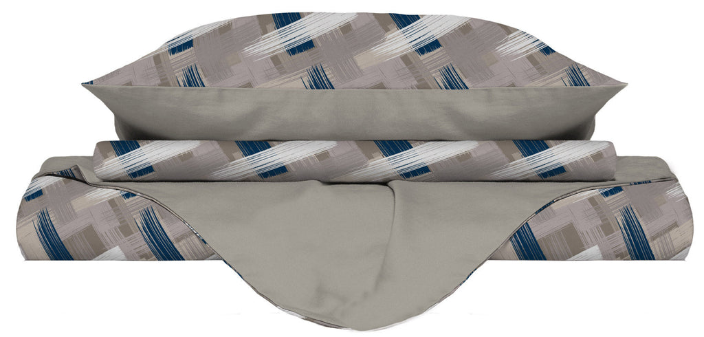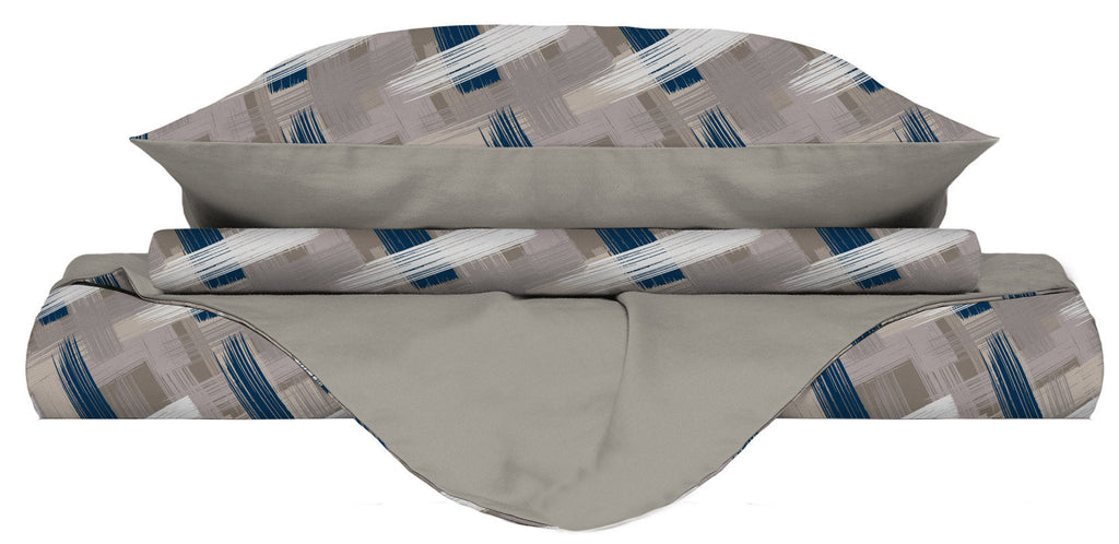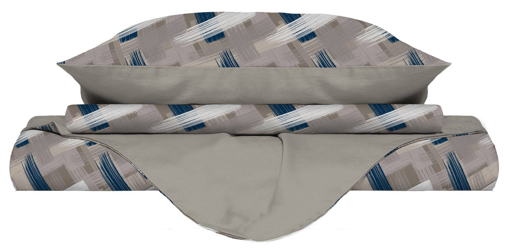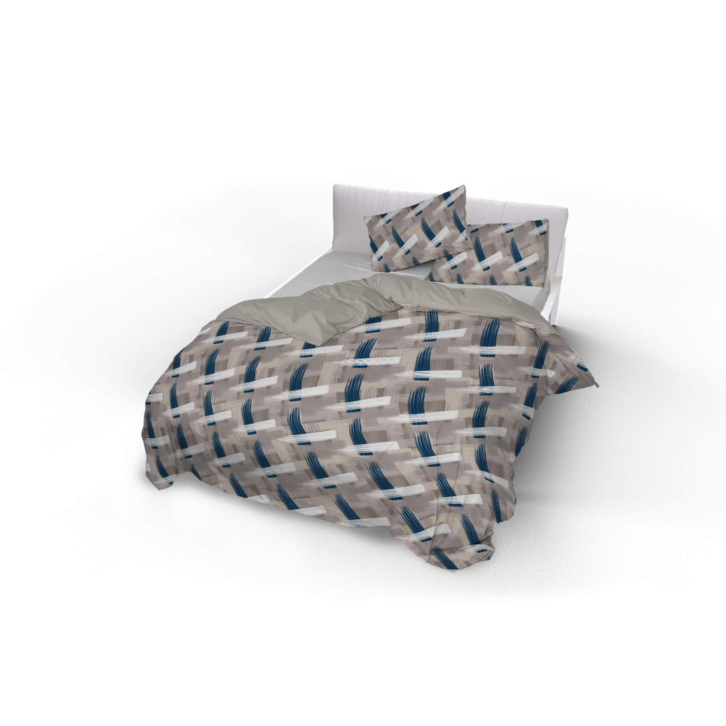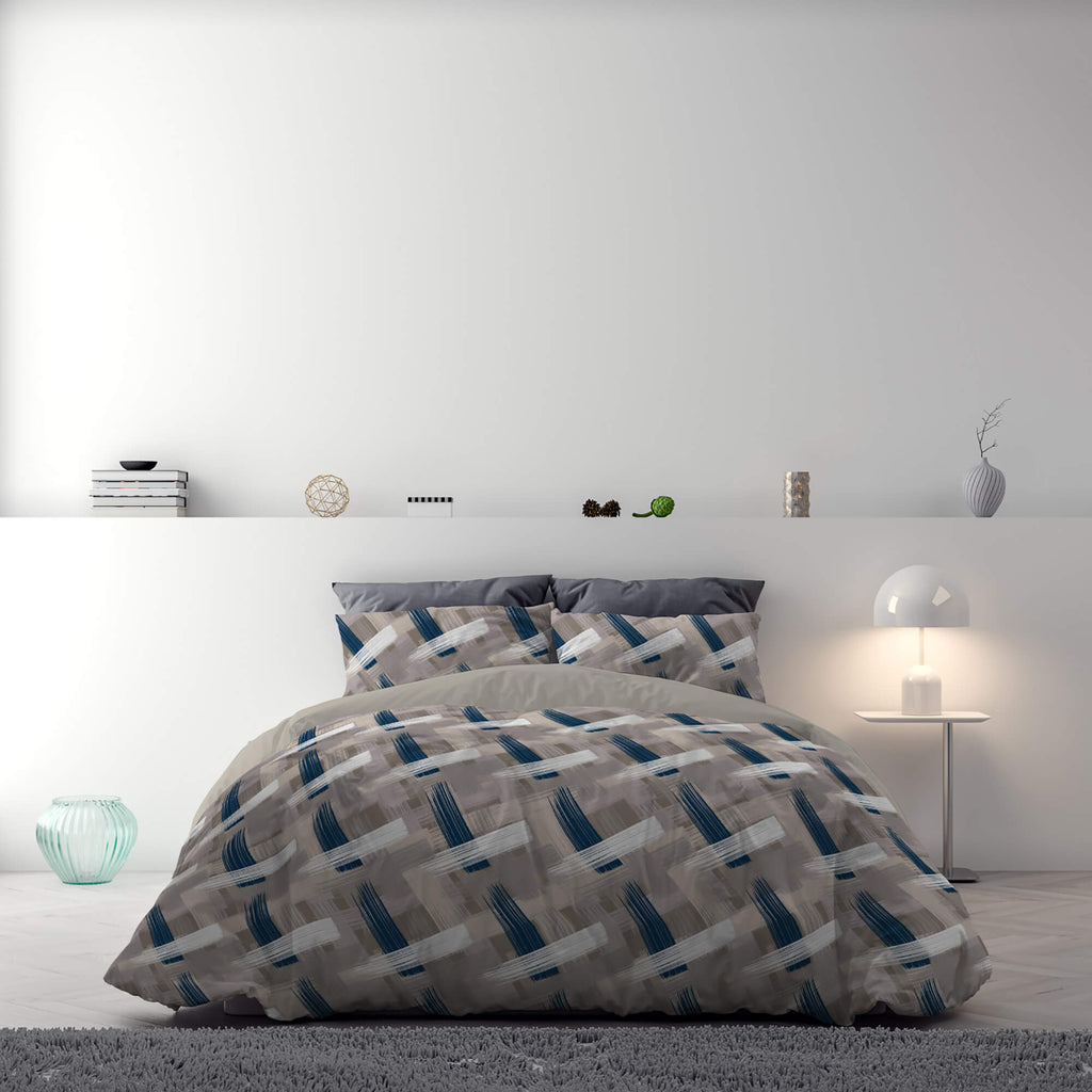Bettbezug mit Aufdruck auf der Tasche und doppelseitigen Kissenbezügen mit Pinselstrichen