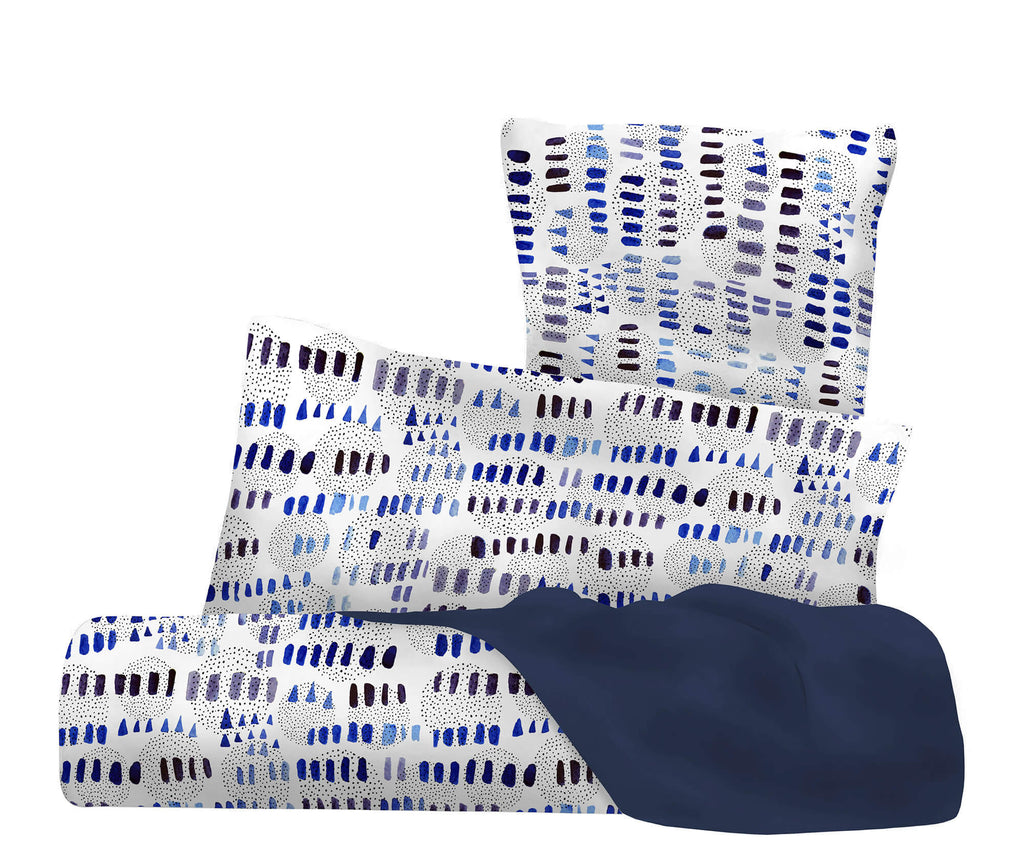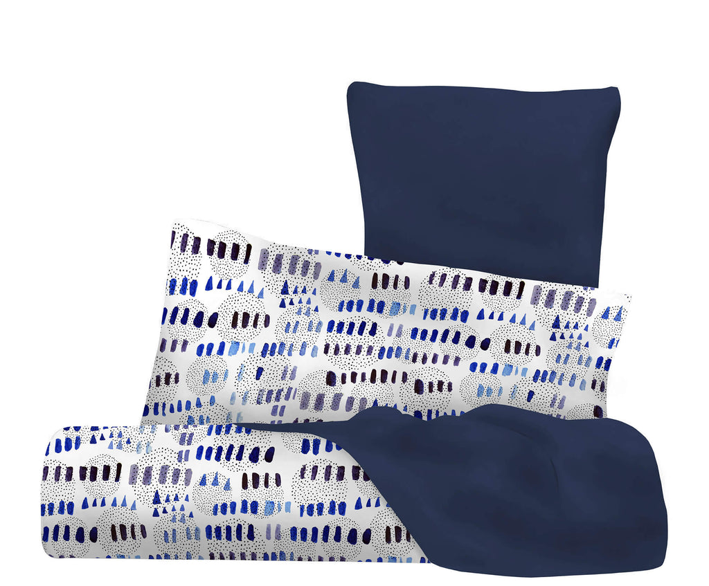 Einzelbettbezug mit Aufdruck auf der Tasche und Doubleface-Kissenbezügen mit Punkten und Linien
