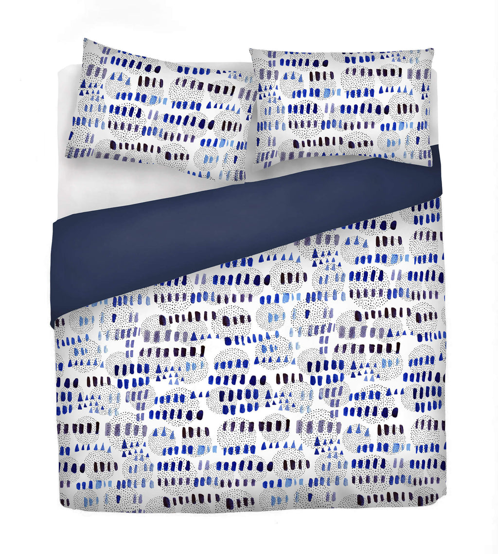 Bettbezug mit Aufdruck auf der Tasche und Doubleface-Kissenbezügen mit Punkten und Linien