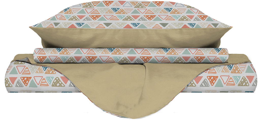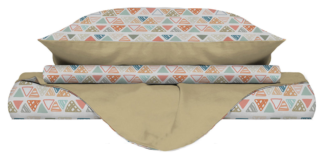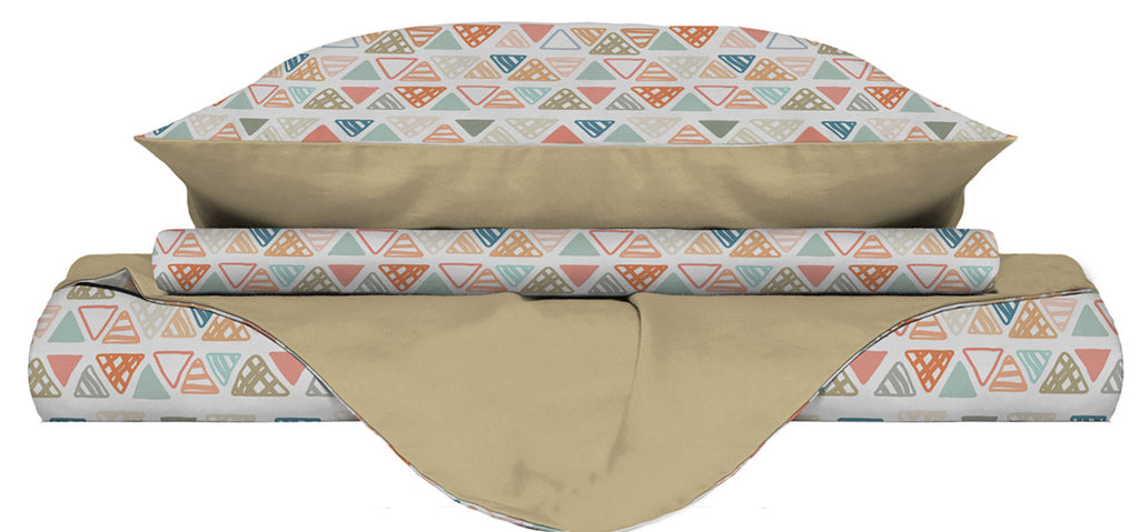 Doppelseitiger Bettbezug mit unterschiedlich bedruckten Kissenbezügen in verschiedenen Größen
