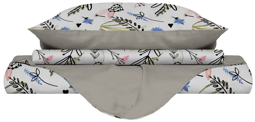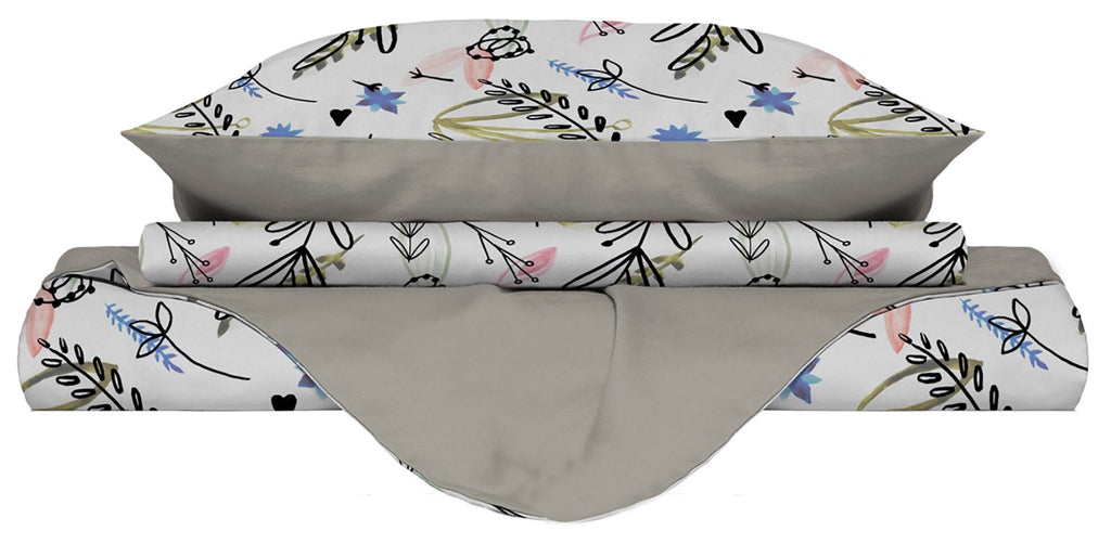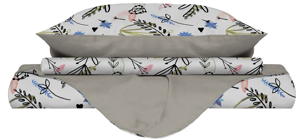 - Einzelbett: Bettbezug 150 x 200 cm + Doppellasche zum Befestigen unter der Matratze + Kissenbezug 52 x 82 cm + Innenlasche