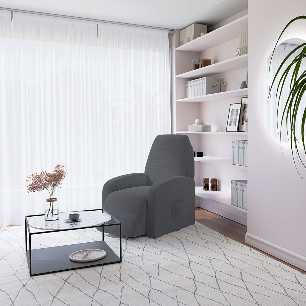 Stretch-Sesselbezug in Einheitsgröße mit dunkelgrauer Seitentasche