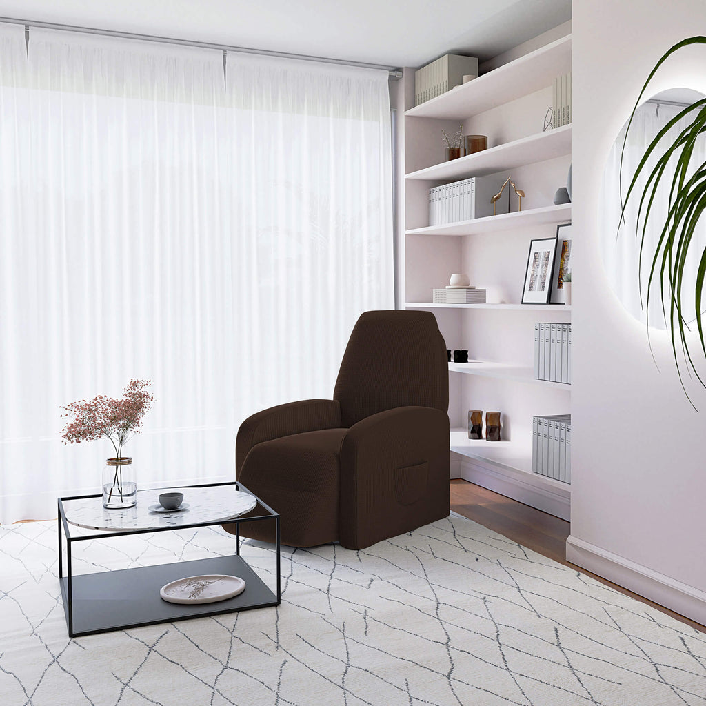 Stretch-Sesselbezug in Einheitsgröße mit brauner Seitentasche