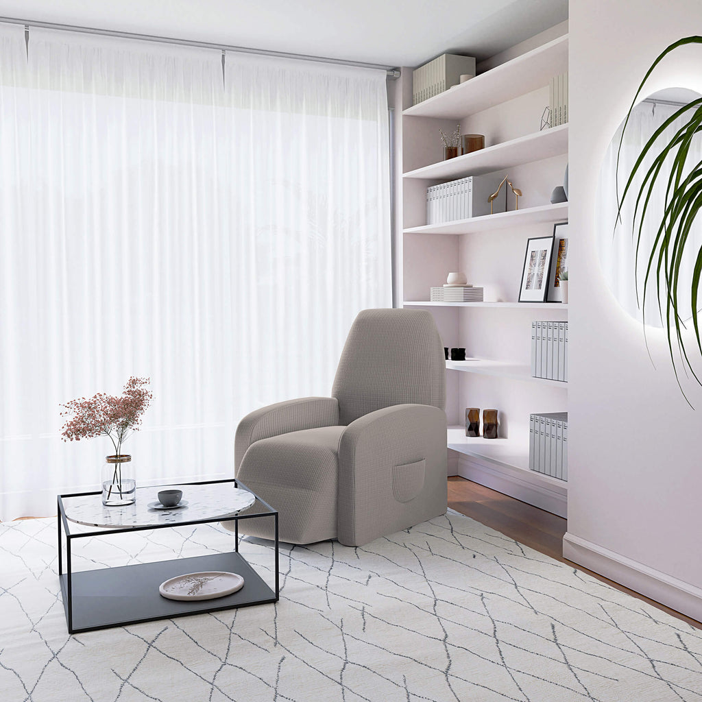 Stretch-Sesselbezug in Einheitsgröße mit taupefarbener Seitentasche