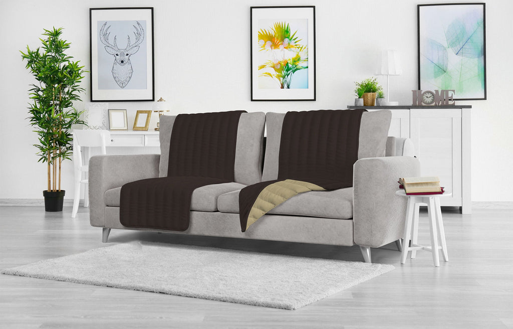 Gesteppter Sofabezug aus Doubleface-Mikrofaser in Braun/Creme