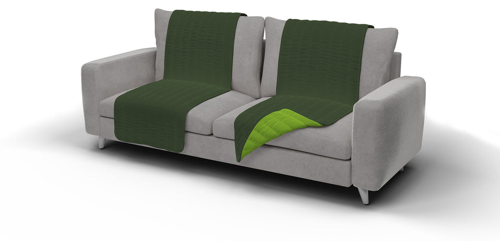 Gesteppter Sofabezug aus Doubleface-Mikrofaser in Apfelgrün/Dunkelgrün