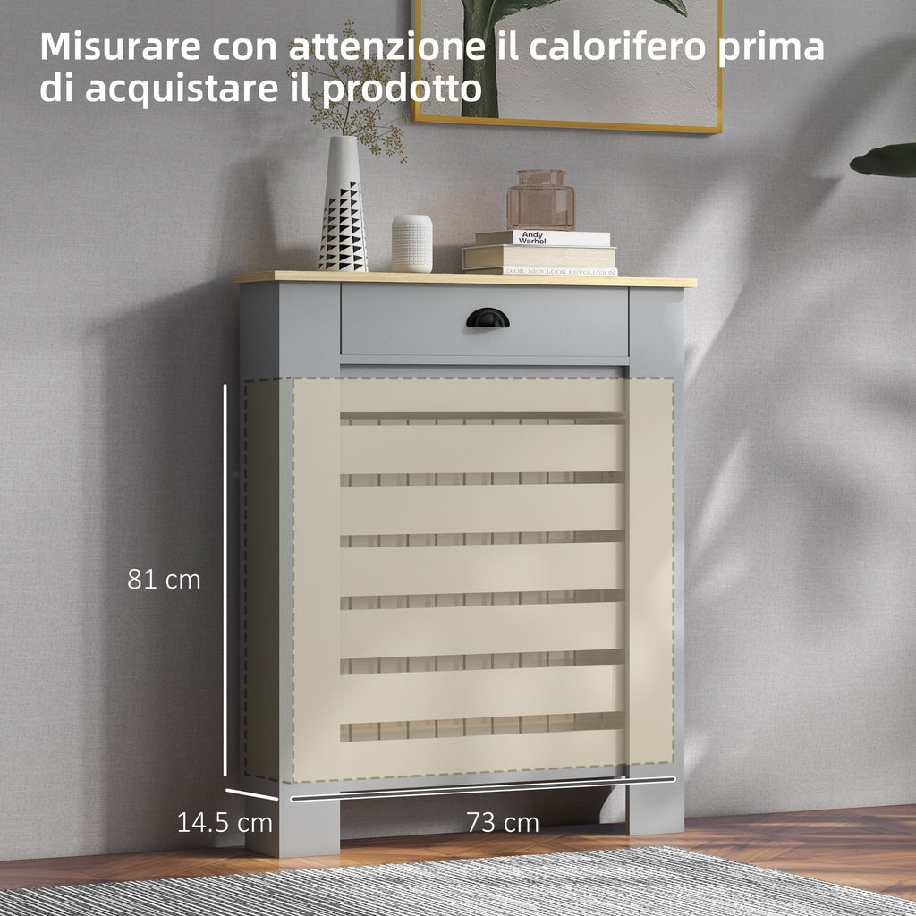 Copritermosifone a Doghe 78x19x95.5 cm Copricalorifero a Griglia con Cassetto in MDF Grigio