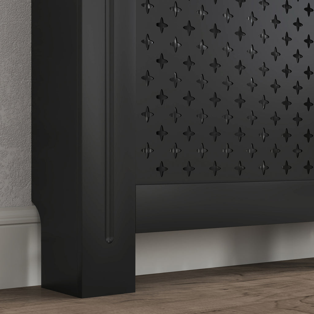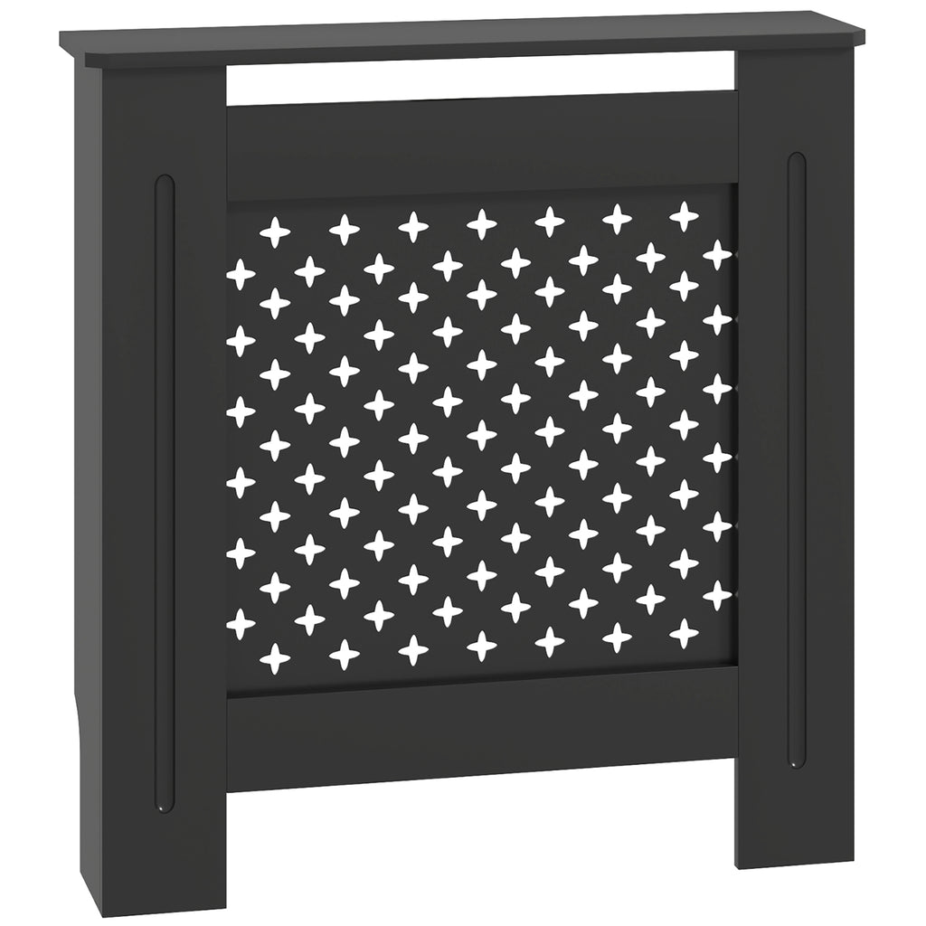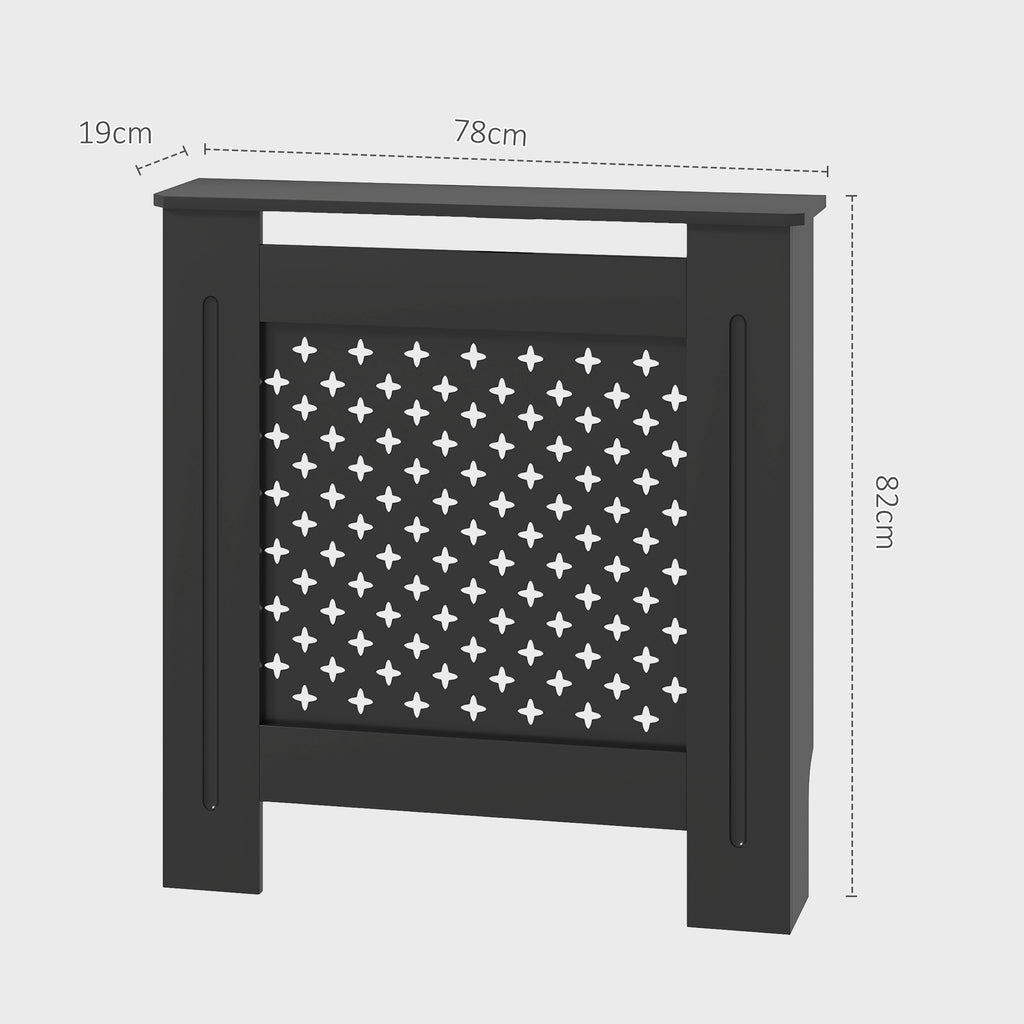 Copritermosifone Traforato a Croce con Ripiano e Fissaggio a Muro 78x19x82 cm in Legno MDF Nero