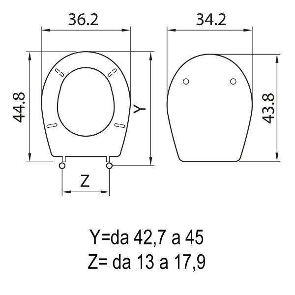 Duroplastischer Toilettensitz 36,2x44,8x5 Saniplast Sebino Weiß Ideal für Modell Colibrì 2 Pozzi Ginori