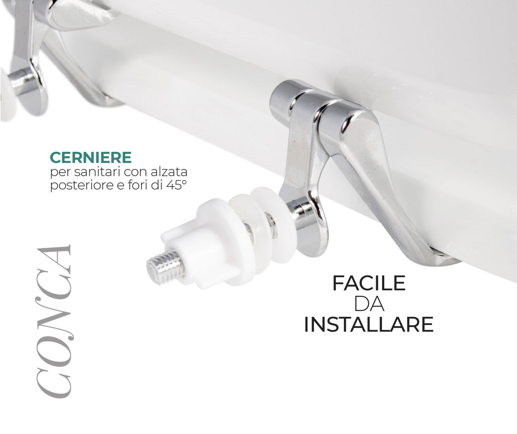 Copriwater Universale 34,2x42,6 cm in MDF Cerniere in Metallo Cromato Conca Bianco Lucido