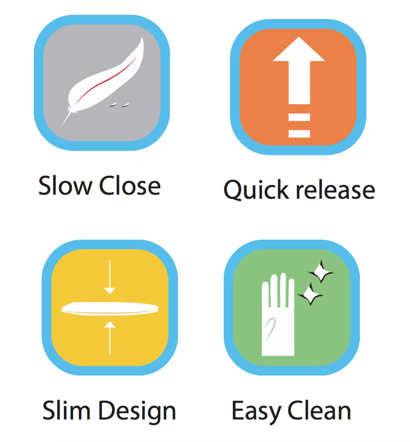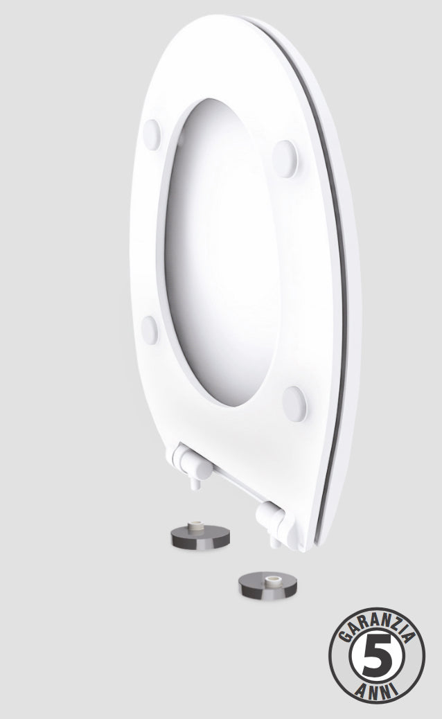 Die duroplastischen Toilettensitze sind sehr komfortabel und schnell zu reinigen, dank des Schnellverschlusssystems , mit dem Sie den gesamten Sitz mit einer einzigen Geste entfernen können.