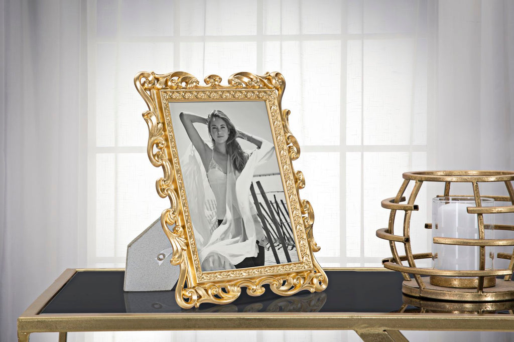 Harzrahmen mit Glas. Geometrische Linien kombiniert mit der Eleganz von Gold, um Ihre schönsten Erinnerungen auf eine zeitgemäße und niemals vorhersehbare Weise einzurahmen.