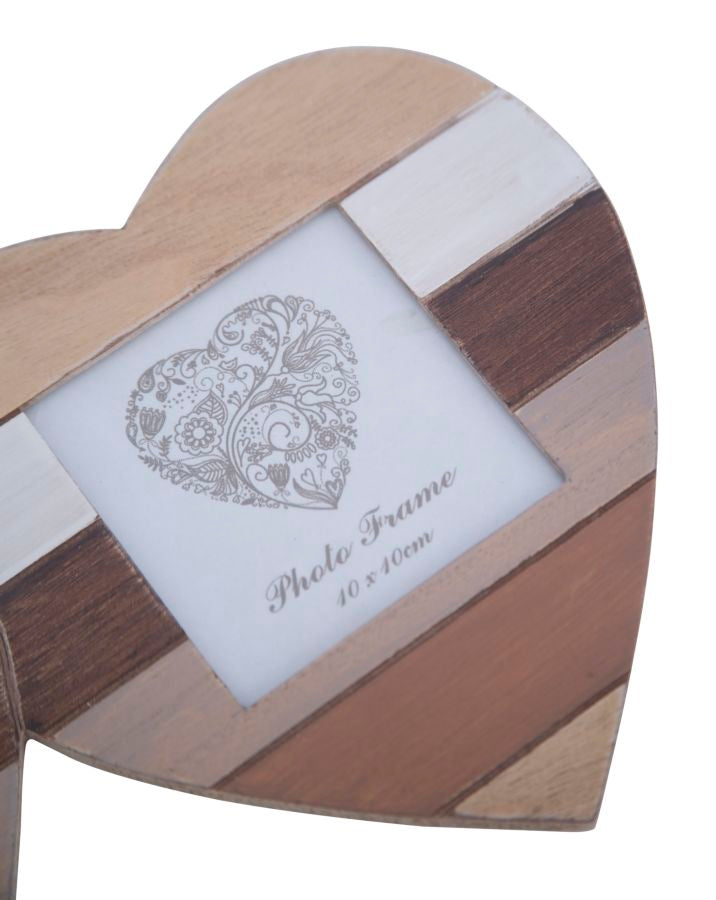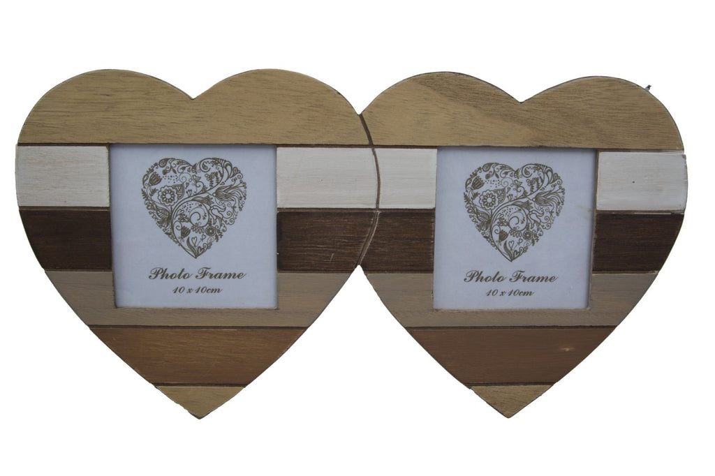 Herzförmiger Holzrahmen mit zwei Fotorahmen. Halten Sie Rahmen, um Ihre besten Erinnerungen einzurahmen