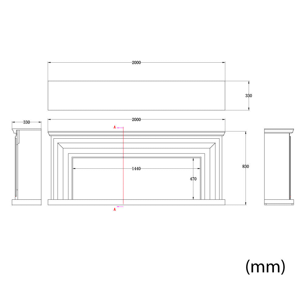 Cornice da Pavimento per Inserto Camino Elettrico 200x83x33 cm in MDF Sined Merapi Bianco