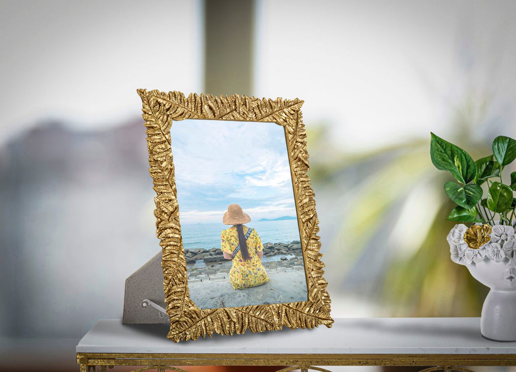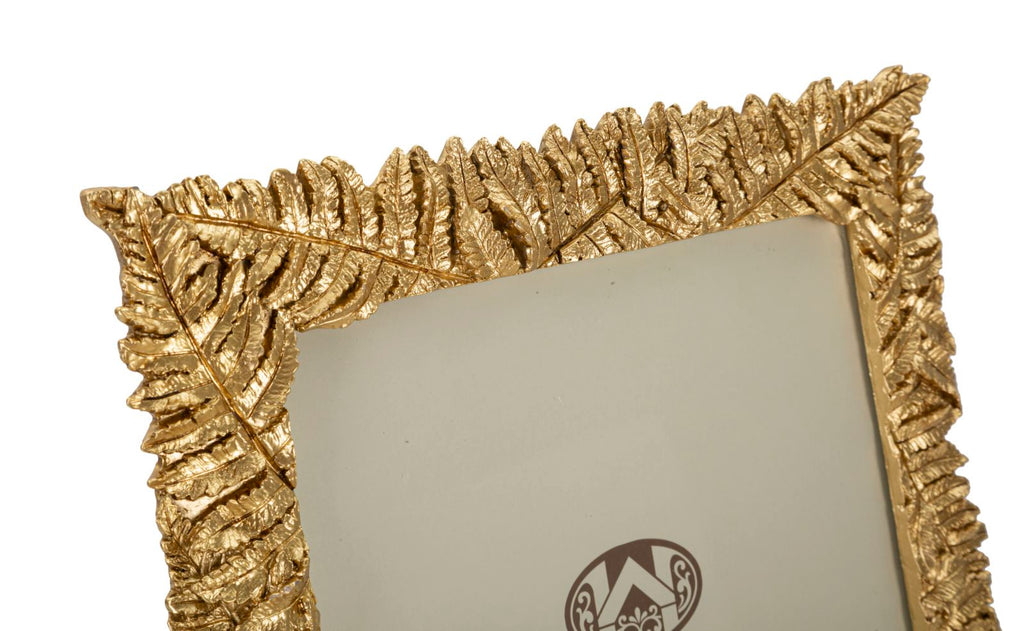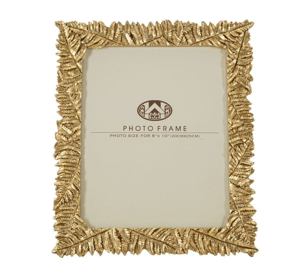 Questa cornice portafoto è caratterizzata da eleganti decorazioni che evocano le delicate foglie di felce. Realizzata con cura nei dettagli, dona un tocco di natura e raffinatezza ad ogni ambiente. Il formato di 20x25 cm permette di inserire una foto di dimensioni standard, rendendo questa cornice ideale per esporre ricordi preziosi in modo elegante e armonioso. Un complemento d'arredo perfetto per aggiungere un tocco di stile alla tua casa o regalare un'emozione unica a una persona speciale.
