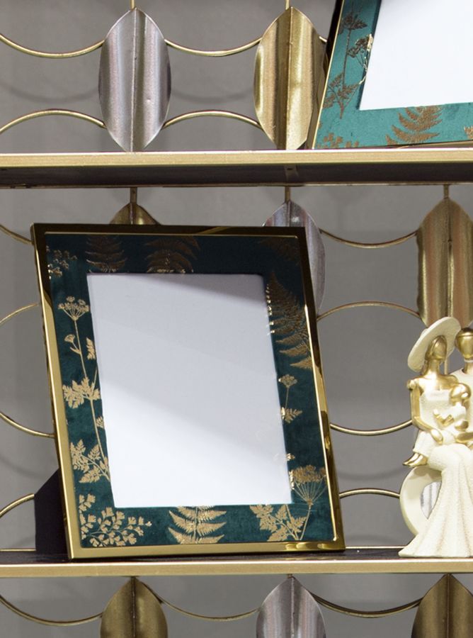 Rahmen aus Stoff und Metall mit Blumendekor. Wunderschöne Fassungen mit elegantem Charme. Sie umrahmen Ihre schönsten Momente mit Klasse und einem Hauch von Gold