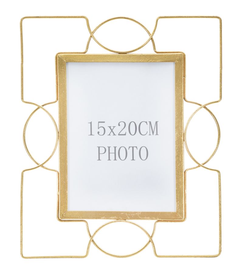 • La cornice è in metallo dorato e ha un design semplice con linee geometriche