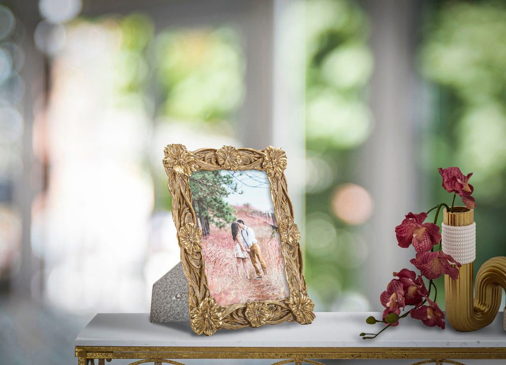 Questo elegante portafoto è caratterizzato da una cornice raffinata, decorata con intrecci e fiori che aggiungono un tocco di delicatezza al suo design. Il formato foto è di 15x20 cm, perfetto per esporre scatti significativi o ricordi speciali. Grazie alla sua eleganza e alle graziose decorazioni, questo portafoto sarà un complemento ideale per arredare con stile e aggiungere un tocco di classe a qualsiasi ambiente.