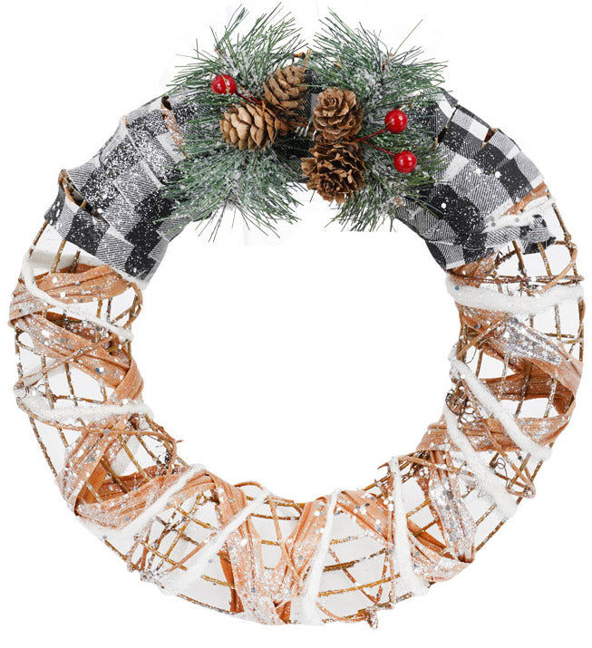 Weihnachtskranz hinter der Tür Ø30 cm mit Schleife und Weihnachtsbild
