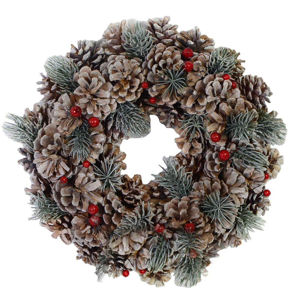Glitzerkrone mit natürlichen Beeren und Tannenzapfen cm Ø45