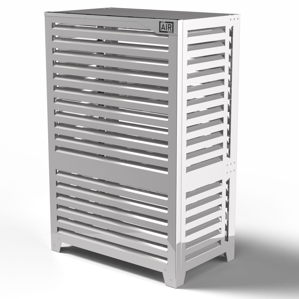 Il colore bianco di base è l'ideale per personalizzare la cover sul posto, nella tinta della parete o degli infissi, o trasformarla in un opera d'arte.Cover Pompa di Calore 105x65x150 cm a Terra Indipendente Big Blade VL Bianco