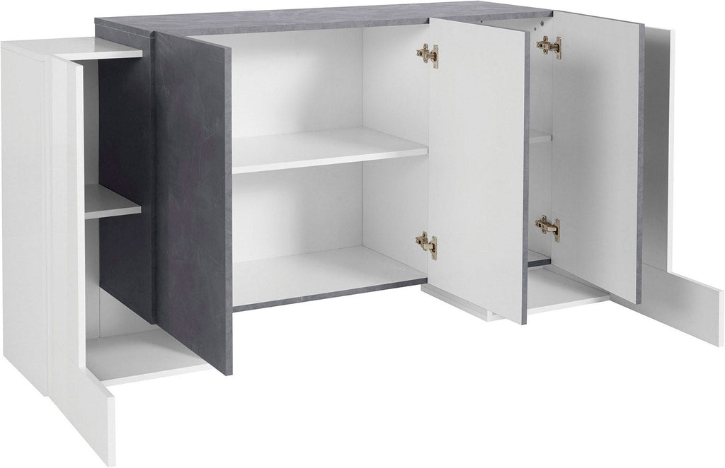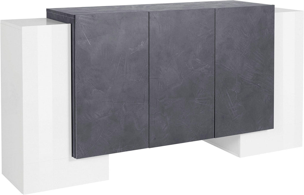 Credenza 2 + 3 Ante 170x45x85 cm Pillon Bianco Lucido e Ardesia