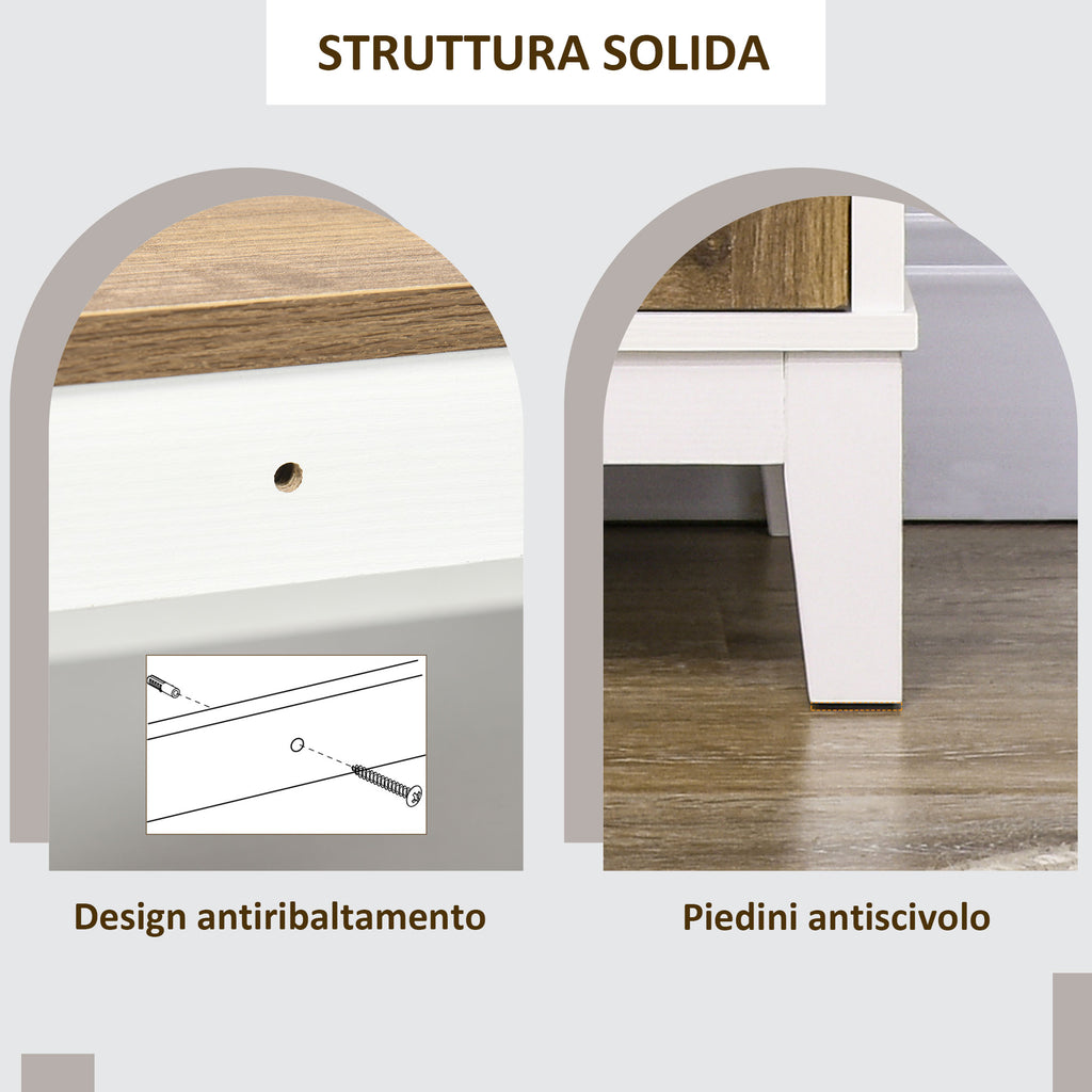 Credenza 2 Ante 1 Cassetto 76,6x 35x 81,5 cm in Legno Truciolare Bianco e Marrone