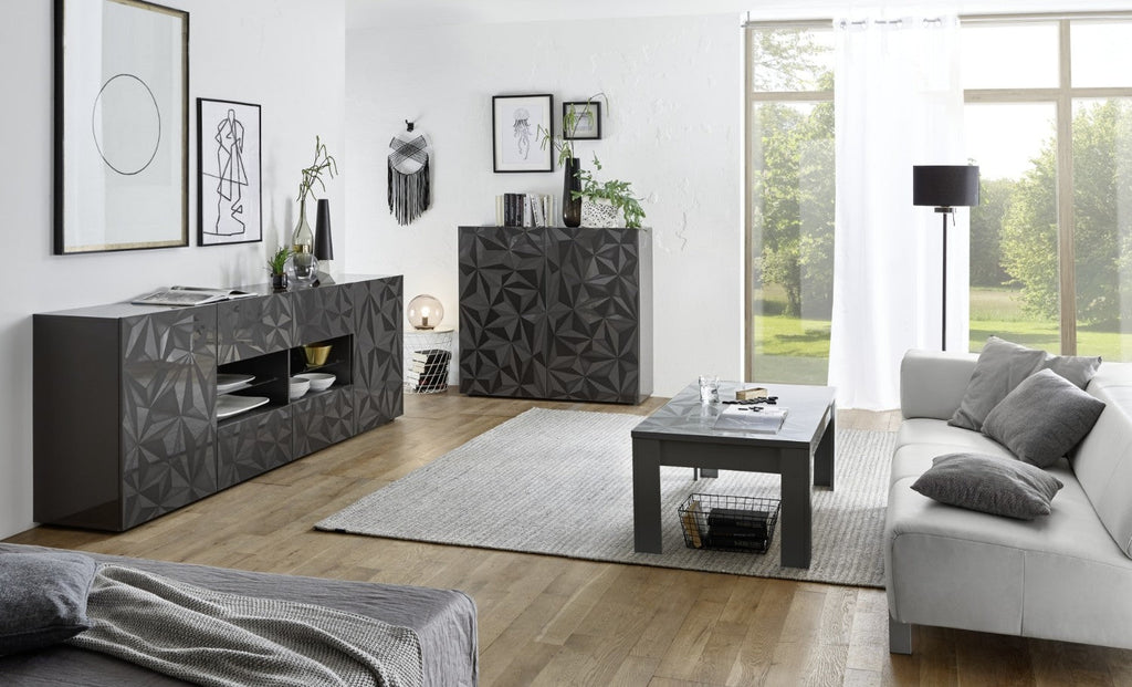 Sideboard mit 2 Türen 120 x 42 x 110 cm aus Prager glänzend schwarzem TFT-Holz