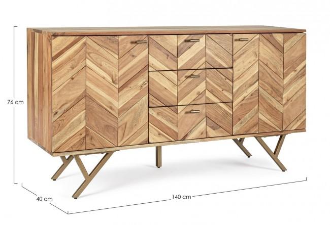 Sideboard 2 Türen 3 Schubladen 140 x 40 x 76 cm in Brown Wood