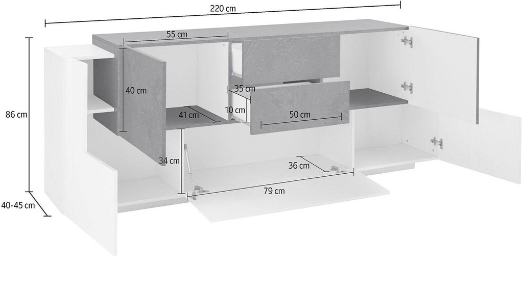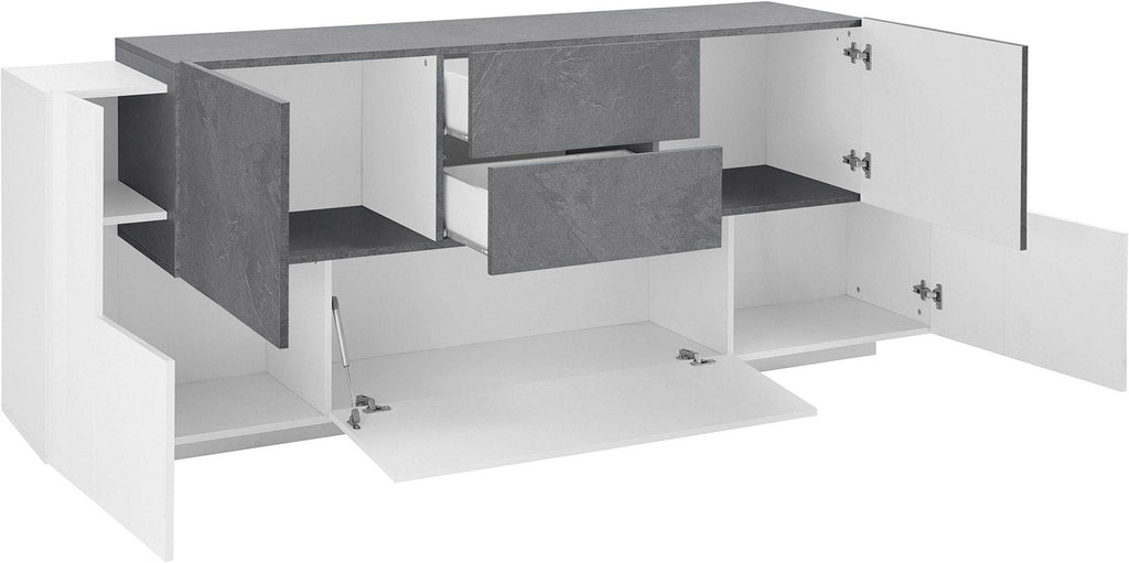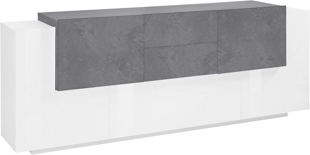 Credenza 3+2 Ante e 2 Cassetti 220x86x45 cm New Coro Bianco Lucido e Ardesia