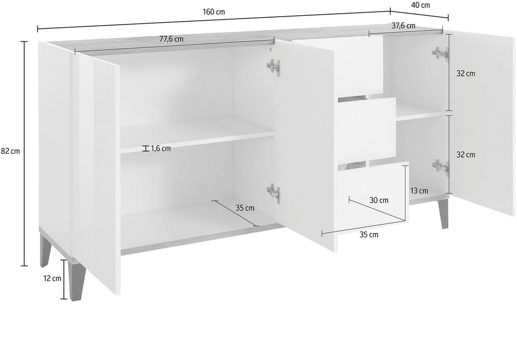 - Dimensioni del mobile montato: 160x40x82 cm (LxPxA)