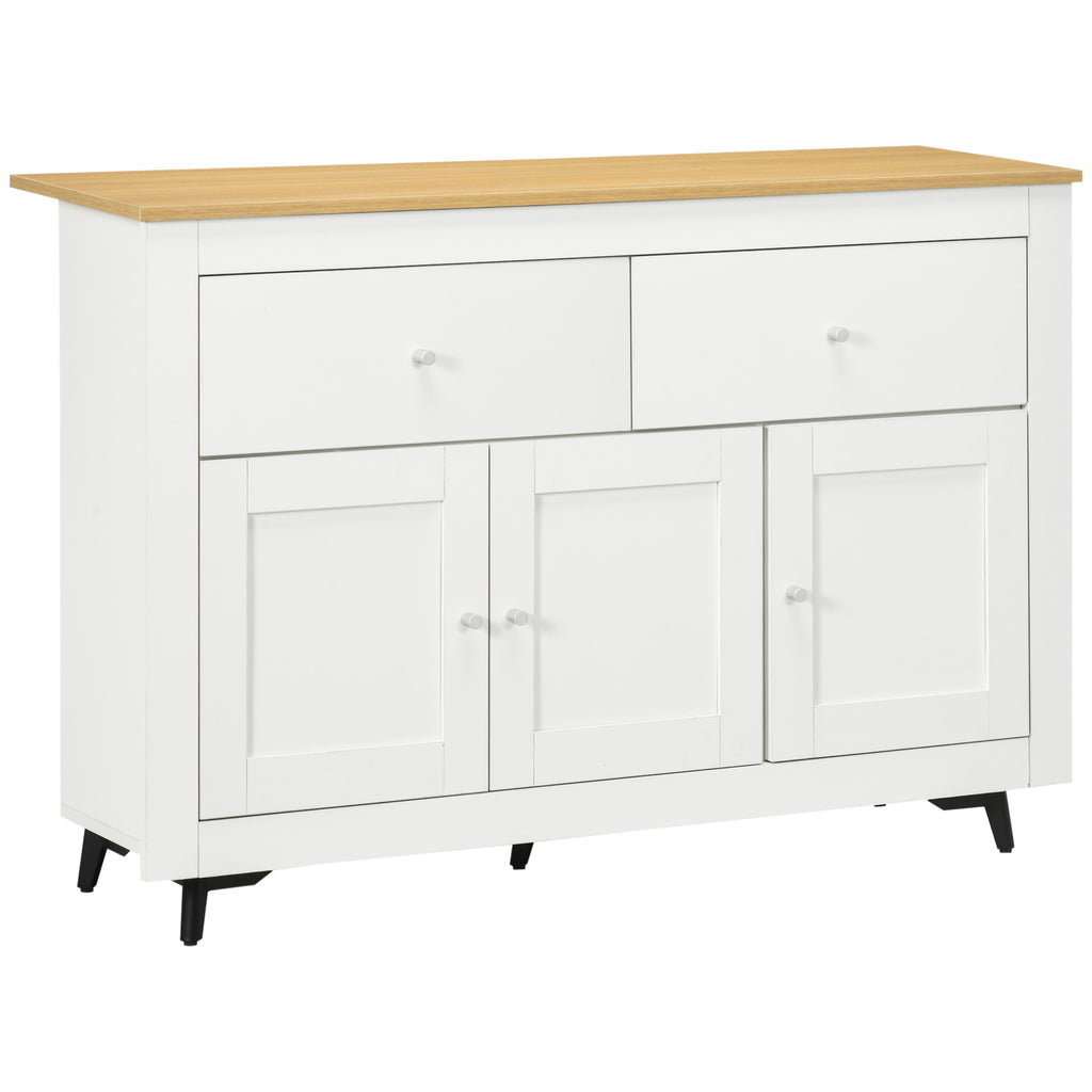 Credenza Buffet 117x35x80 cm con 2 Cassetti e 2 Armadietti in Legno Bianco e color Legno