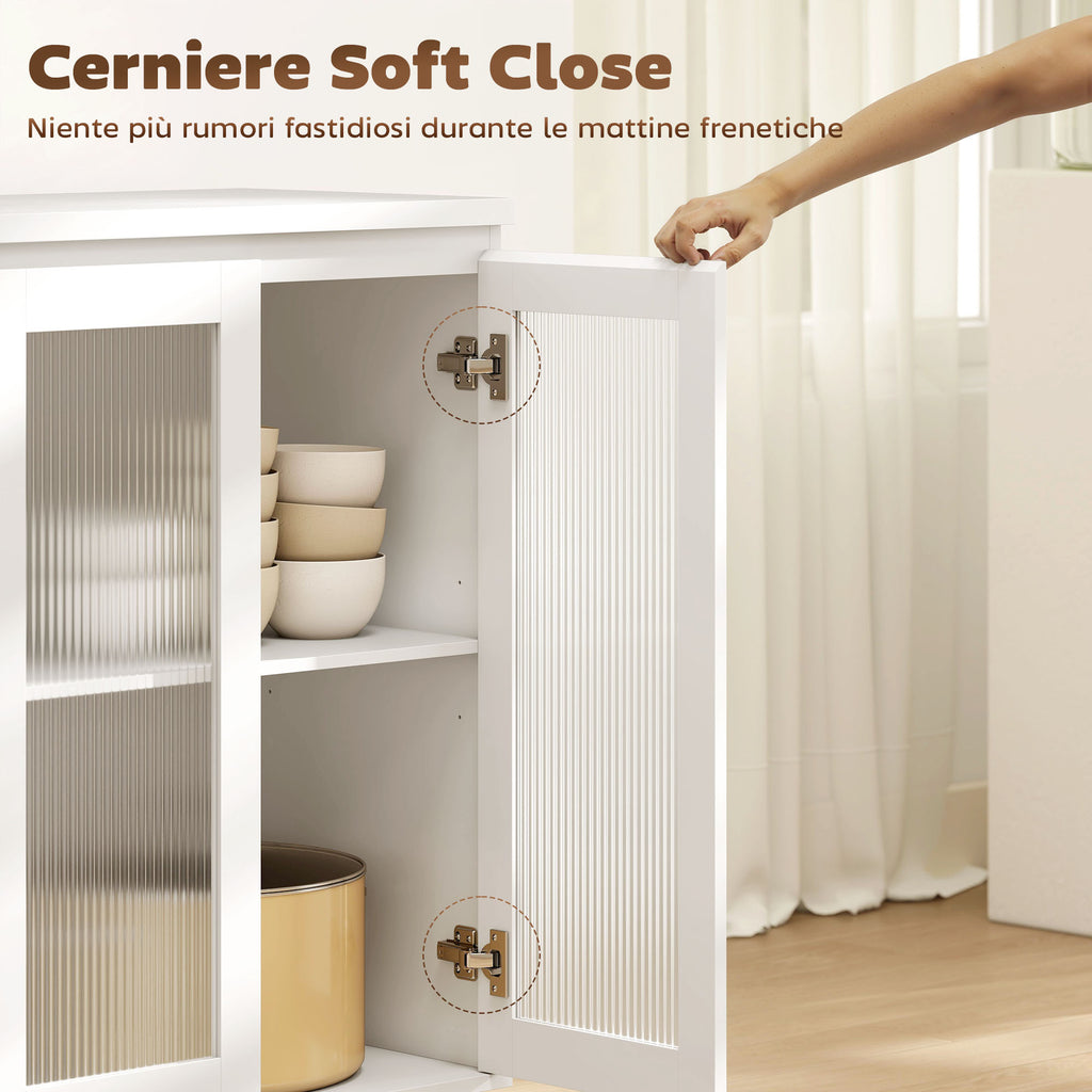 - LOOK ELEGANTE: Il design elegante e senza maniglie della credenza cucina con vetro a coste espone con discrezione le stoviglie più belle e permette di nascondere ciò che non vuoi esporre