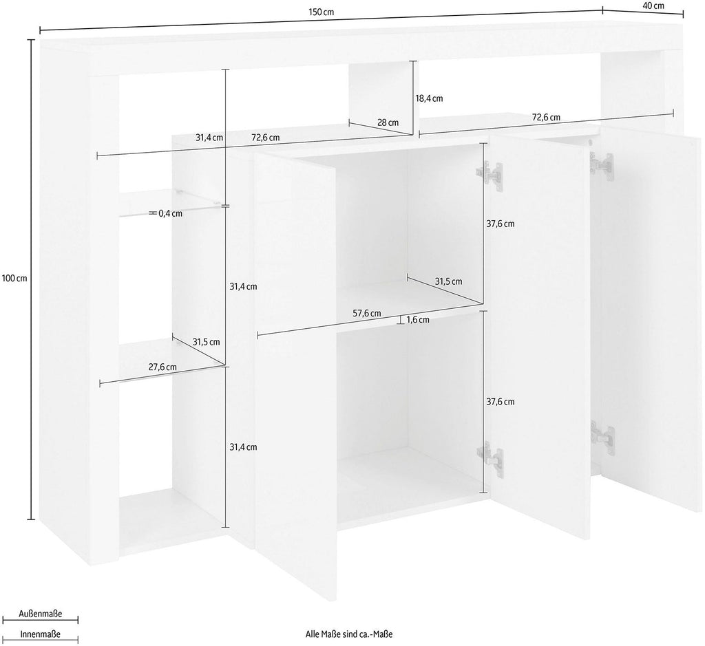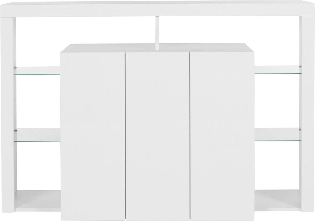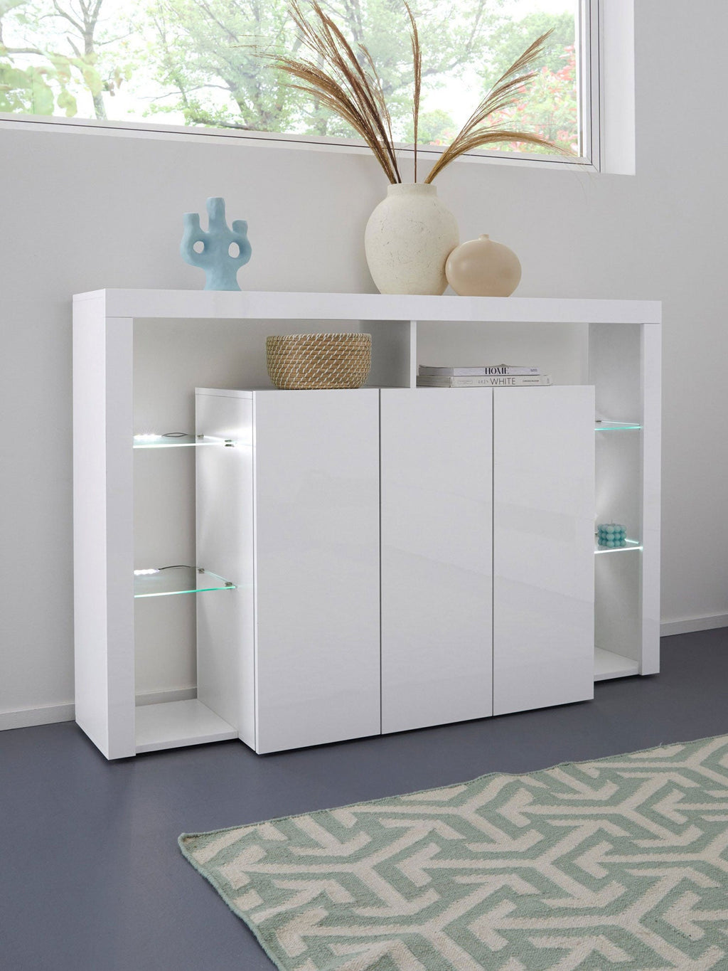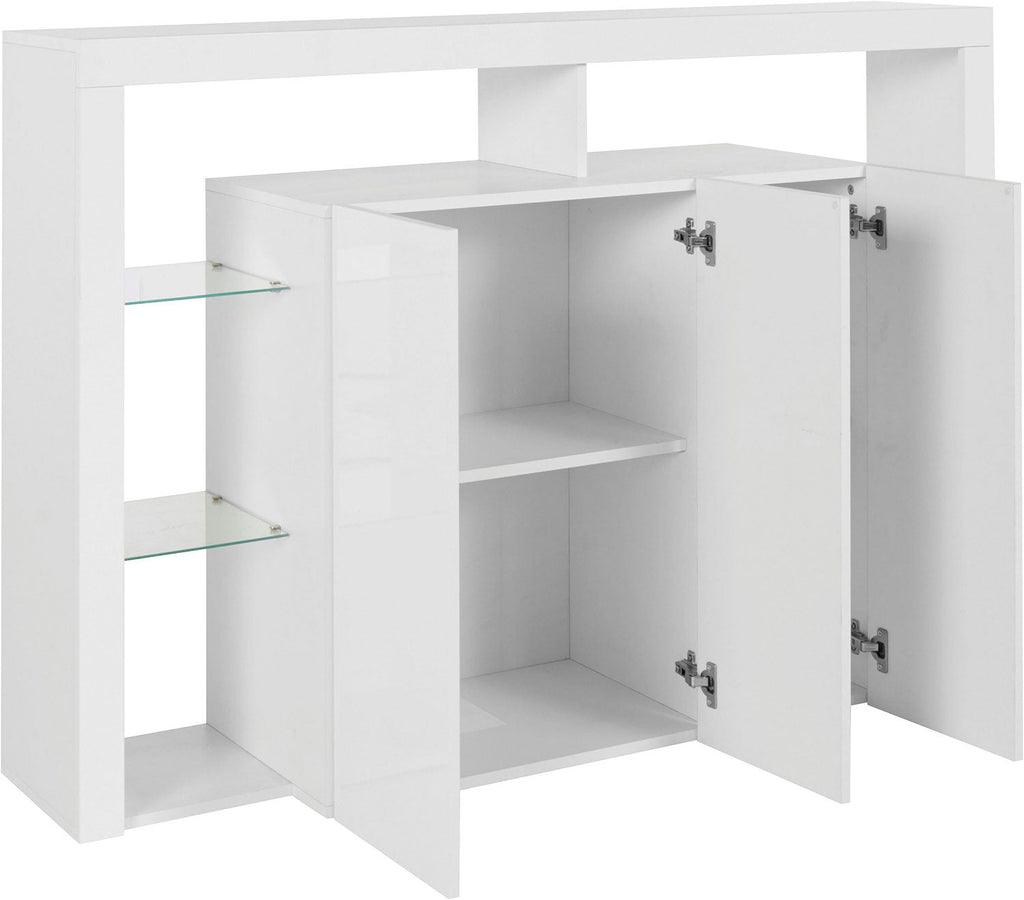 Credenza con 3 Ante e Ripiani in Vetro a Giorno 150x40x100 cm Essential 3A Bianco Lucido