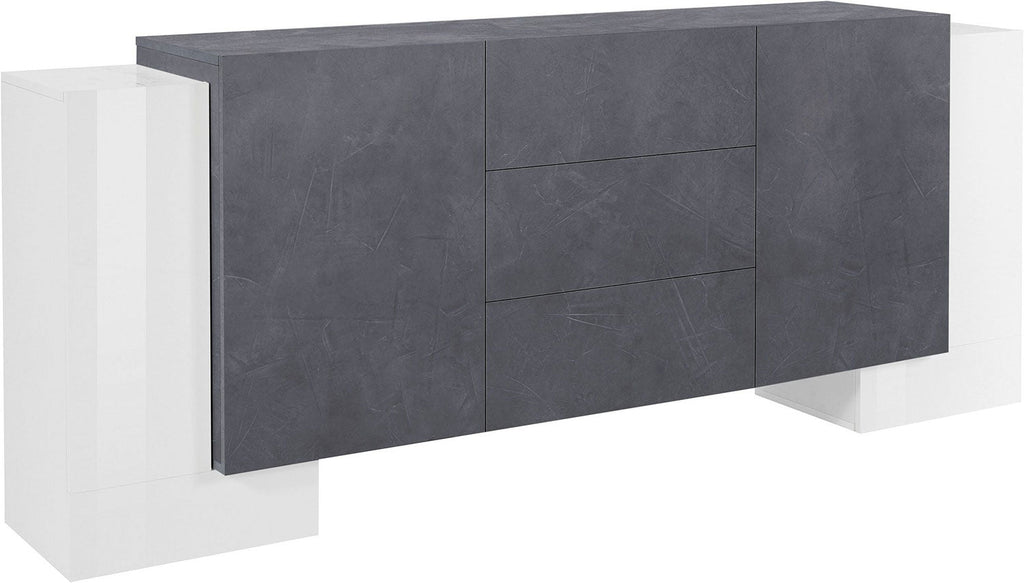 Credenza con 4 Ante e 3 Cassetti 210x45x85 cm Pillon Side 4A 3C Bianco Lucido/Report Grigio