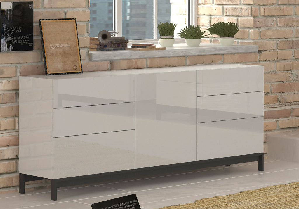 Credenza con piedi 1 Anta + 6 Cassetti 170x40x73 cm Metis Bianco Lucido