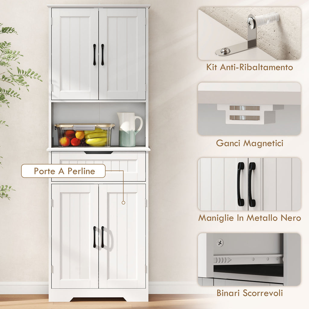 • DESIGN VERSATILE: L'elegante finitura bianca della madia, le ante a doghe perline e le maniglie nere in metallo conferiscono un aspetto fresco e contemporaneo alla tua cucina, sala da pranzo o corridoio