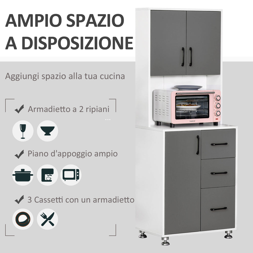 Küchen-Sideboard 60x40x150 cm aus grauer und weißer Spanplatte
