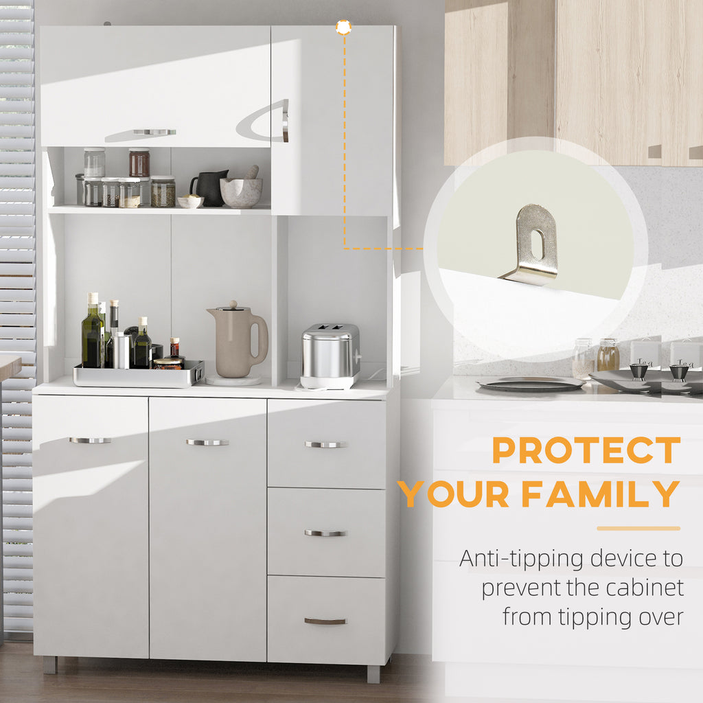 Credenza da Cucina Moderna con Cassetti Armadietti e Ripiani Aperti 100x39,5x183,5 cm Bianco