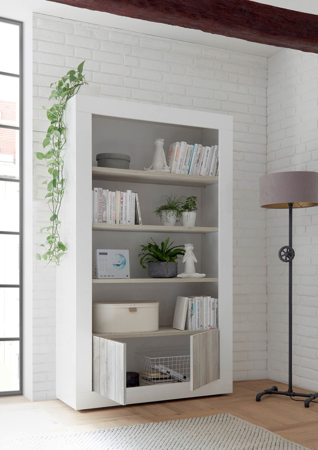 Bücherregal Sideboard 2 Türen 4 Regale 110 x 42 x 191 cm in Lipari White und Pine TFT Wood