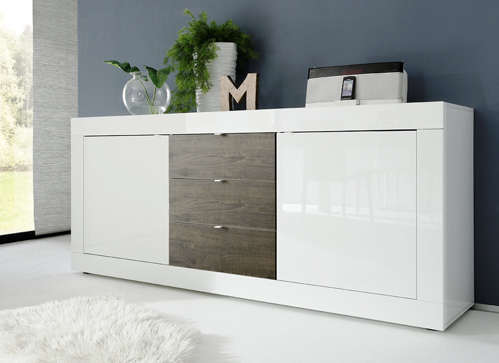 Sideboard Wohnzimmermöbel 2 Türen 3 Schubladen 210x43x86cm TFT Basic Glänzend Weiß Eiche Wenge