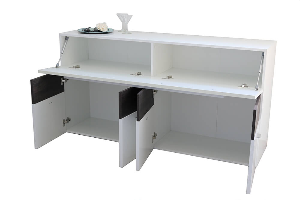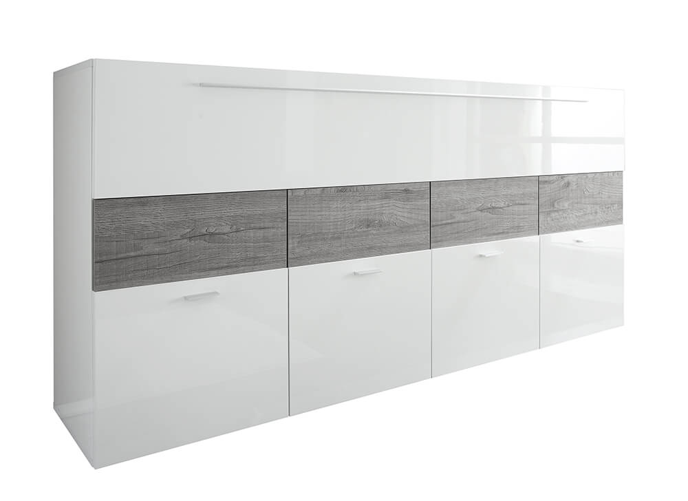 Sideboard Wohnzimmermöbel 4 Türen 1 Klapptür 85x161x43cm TFT Cube Glänzend Weiß und Eiche Grau