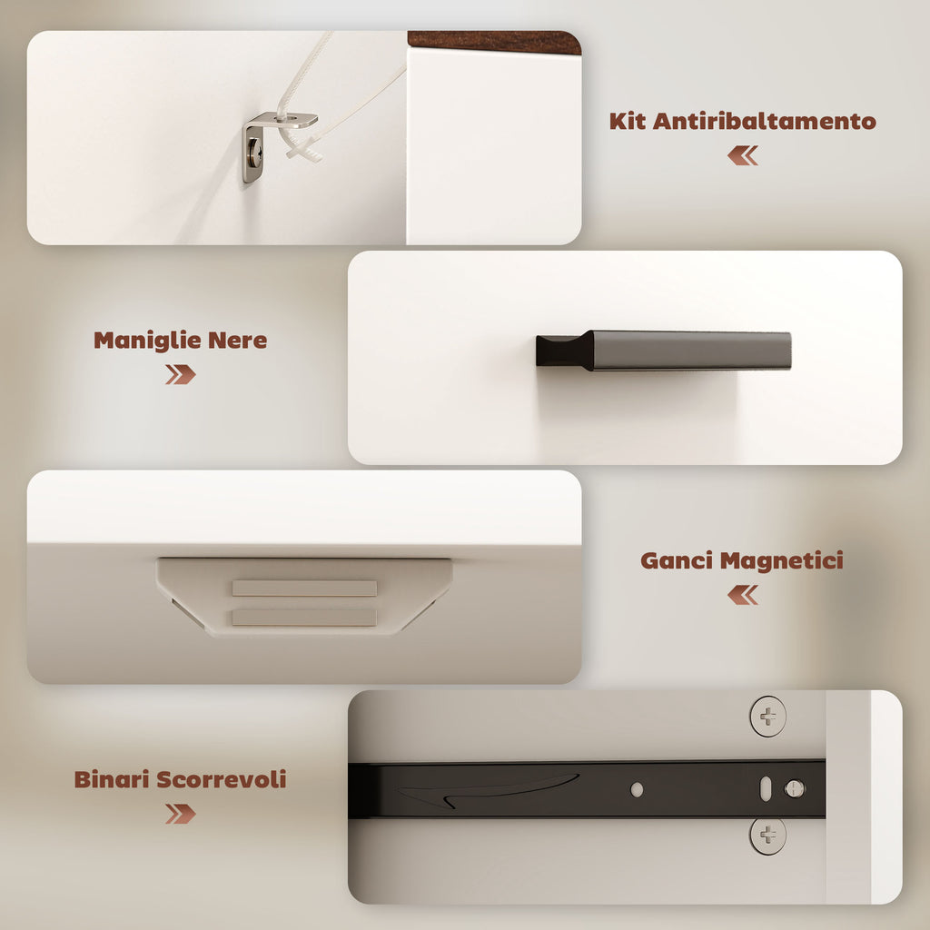Il mobile credenza riporta l'ordine nella tua casa, accogliendo ogni stoviglia, libro, decorazione o piccolo elettrodomestico nei suoi cassetti e nell'armadietto. Con finiture in bianco e legno e maniglie ergonomiche, questo buffet trasforma qualsiasi ambiente in uno spazio accogliente e ordinato. Rinnova subito la tua casa con questo mobile cucina perfetto per ogni esigenza!