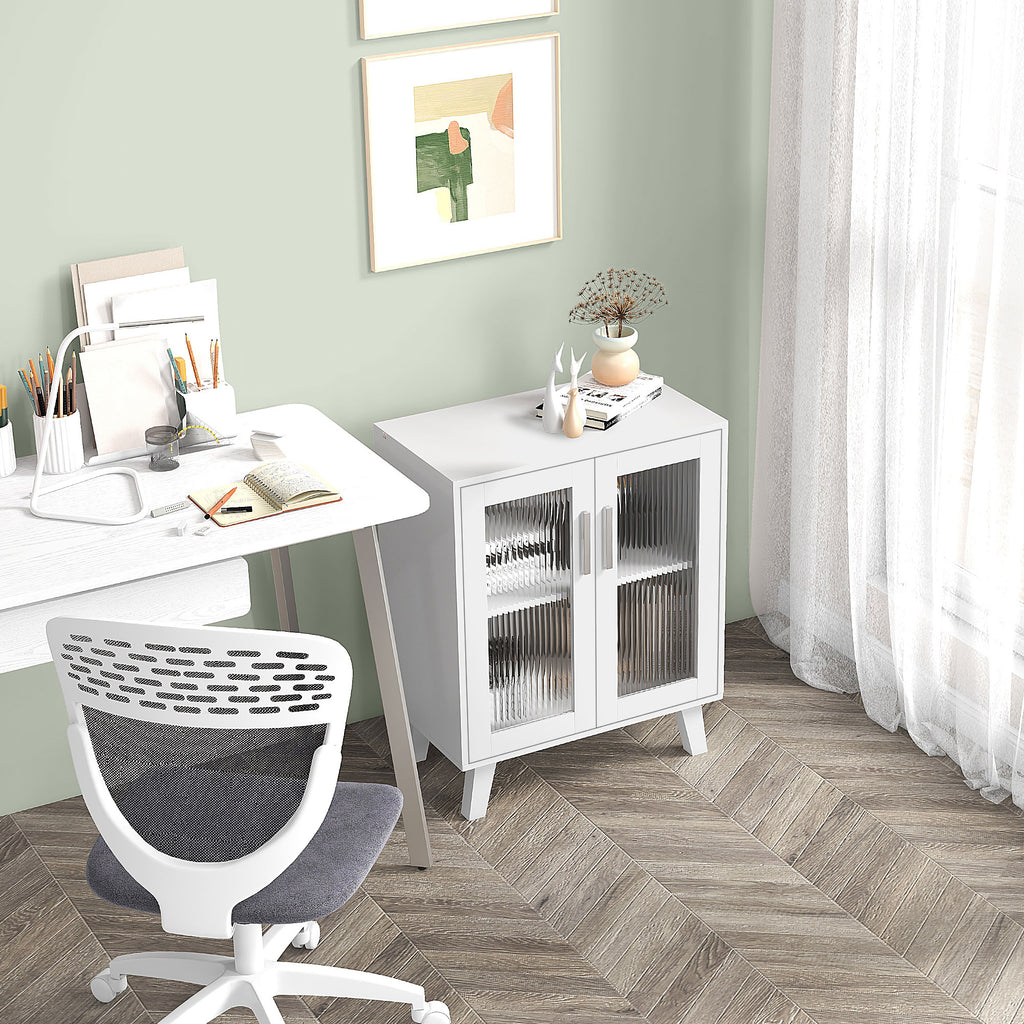 Credenza Moderna Multiuso 61x35x75 cm con 2 Ante Trasparenti e 2 Ripiani Bianco