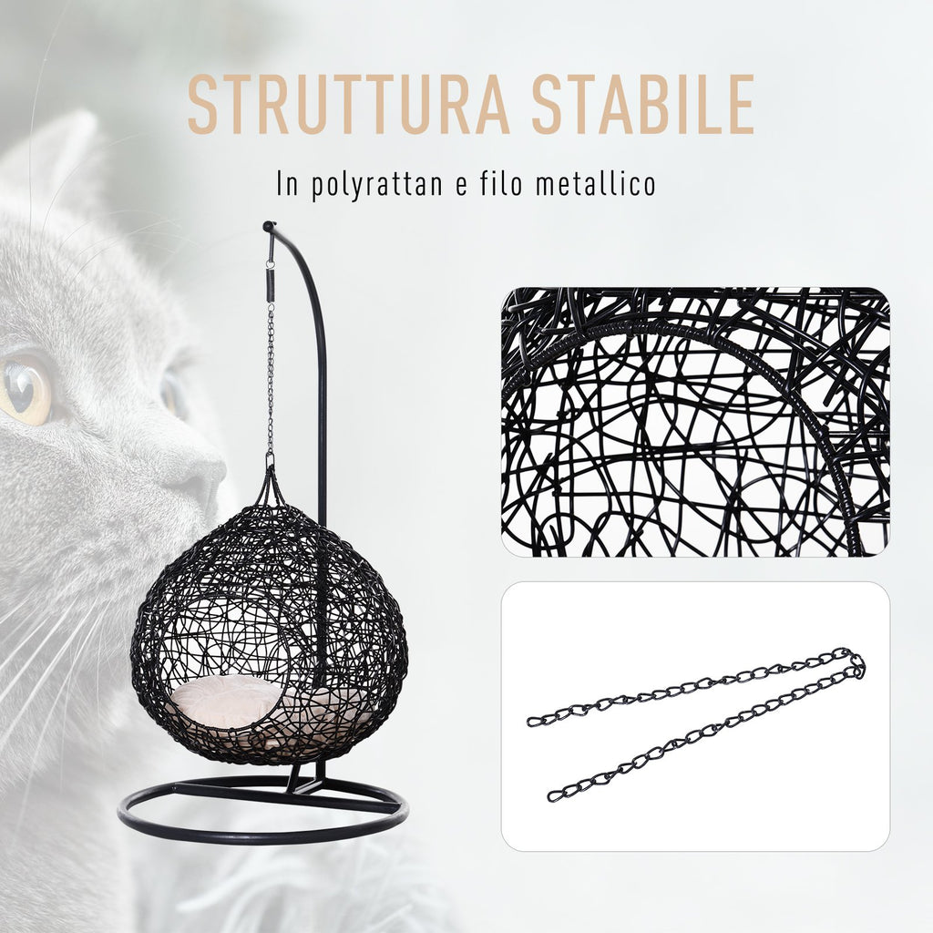 Hängemattenbett in PVC-Rattan-Optik für Katzen Ø60x110 cm mit schwarzem Kissen