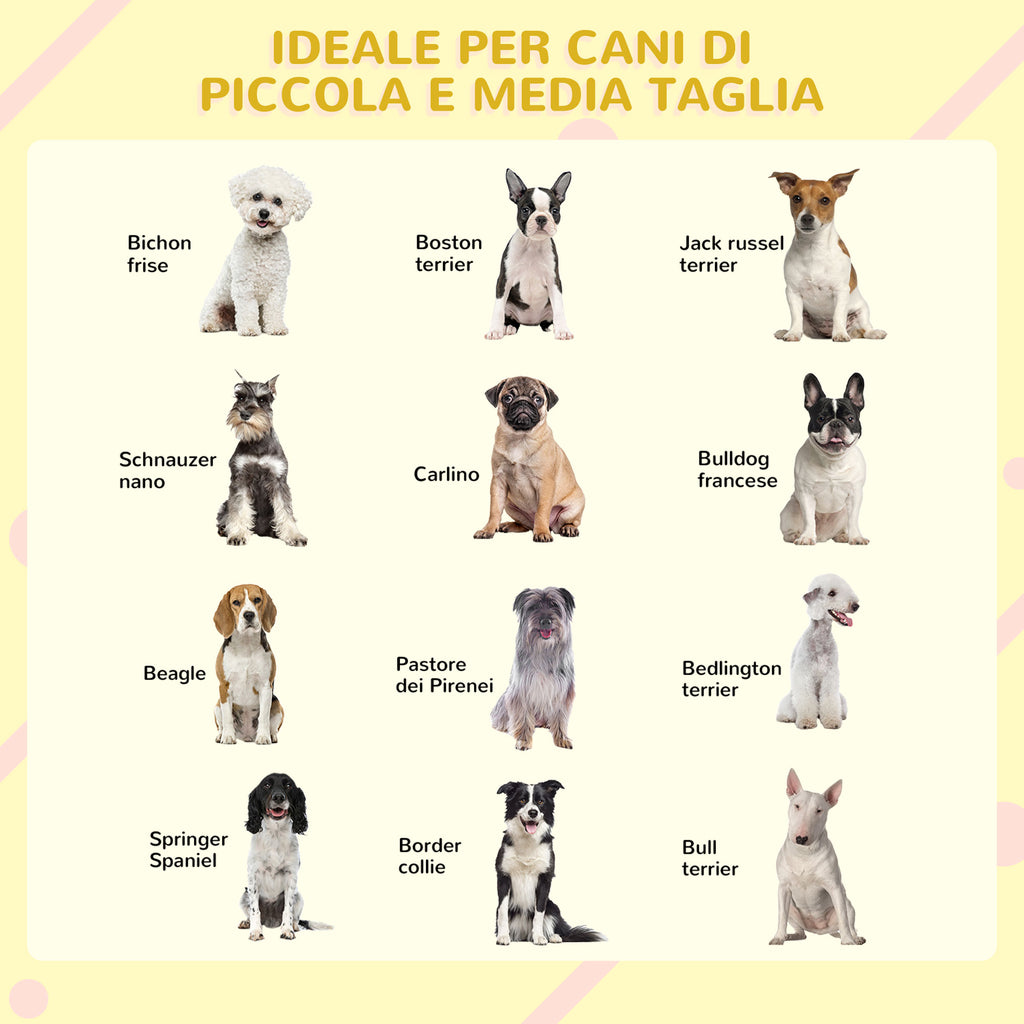 - DIMENSIONI: Dimensioni complessive: 109L x 79P x 72A cm. Adatto a cani di taglia piccola e media fino a 20 kg di peso, con una lunghezza del corpo di 80 cm (es: Border Collie e Bulldog francese). Montaggio richiesto