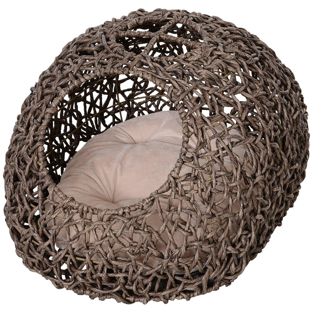 Hundehütte aus PVC in Rattan-Optik für Katzen 66 x 48 x 39 cm mit Seilkissen