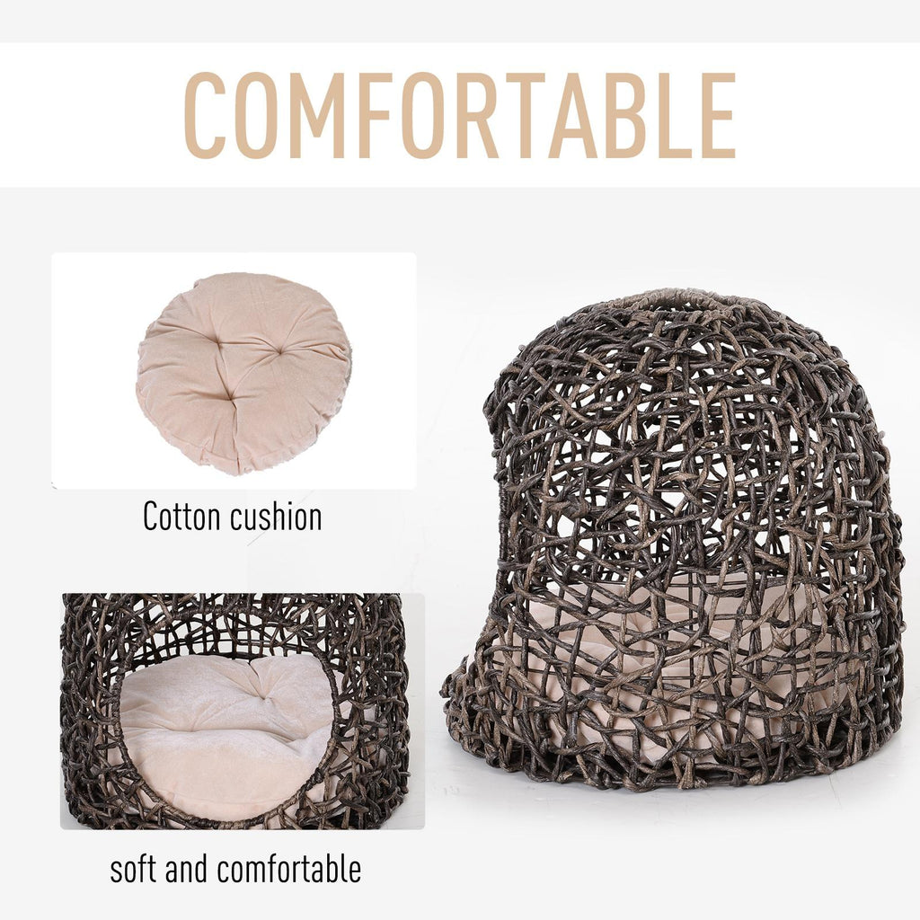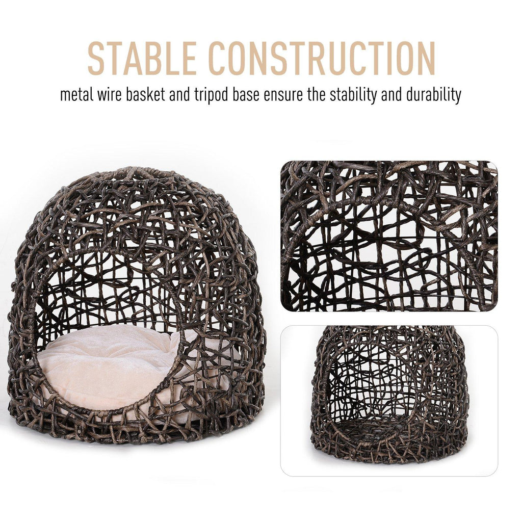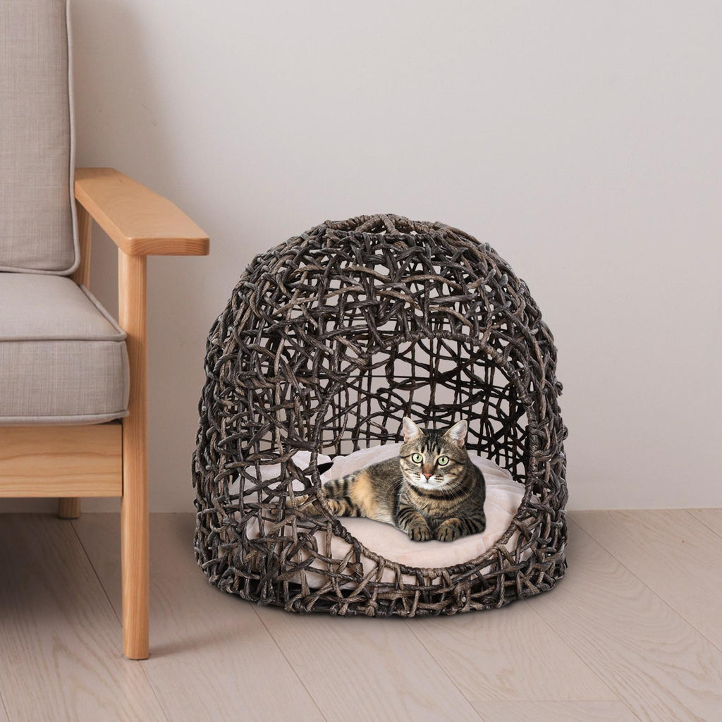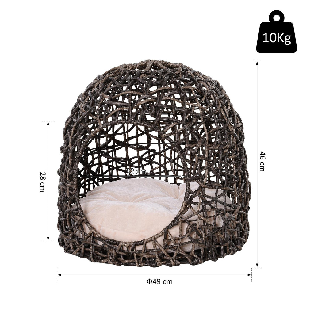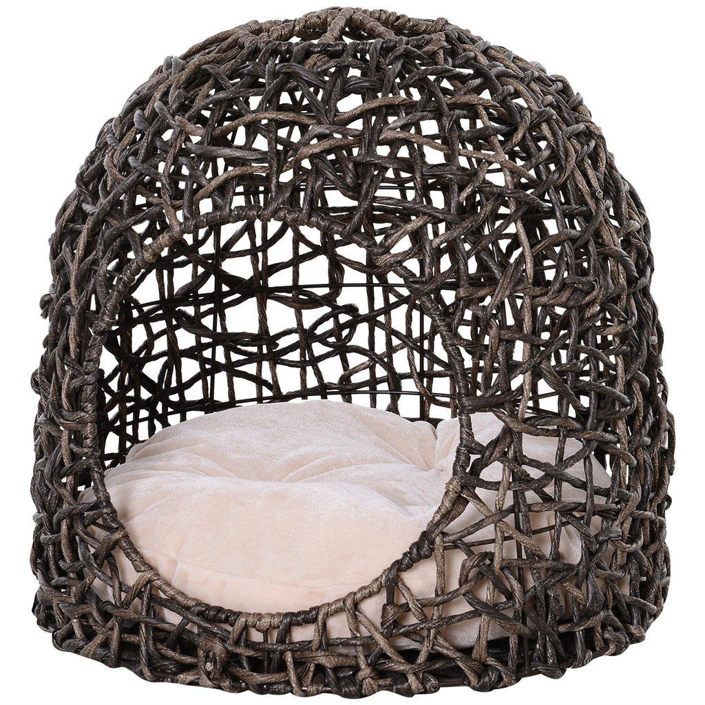 PVC-Hütte mit Weideneffekt für Katzen Ø49x46 cm mit braunem Kissen