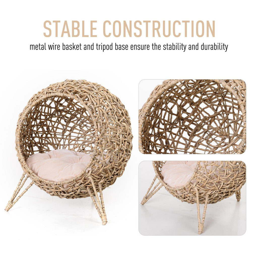 PVC-Hütte mit Weideneffekt für Katzen Ø52x58 cm mit hellbraunem Kissen